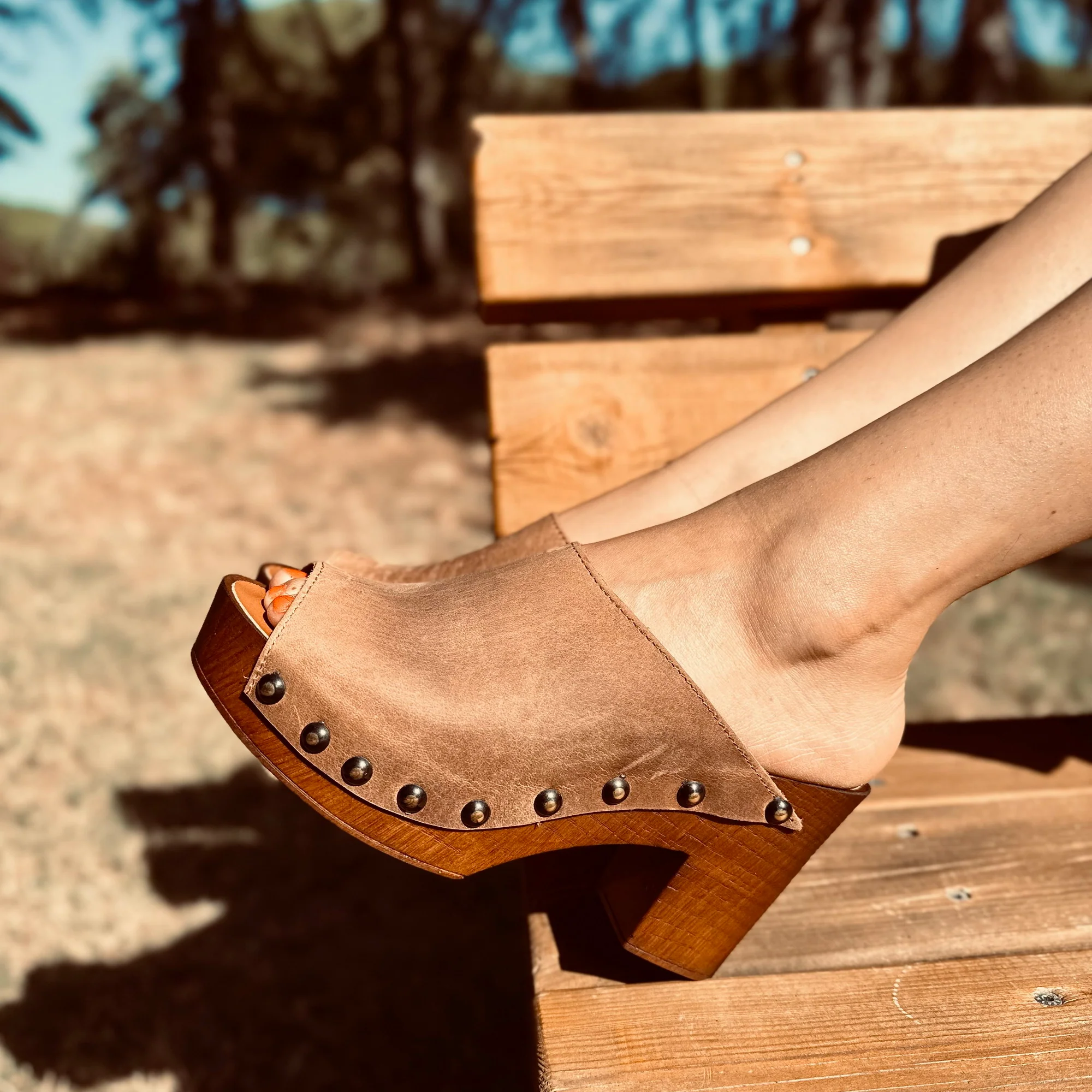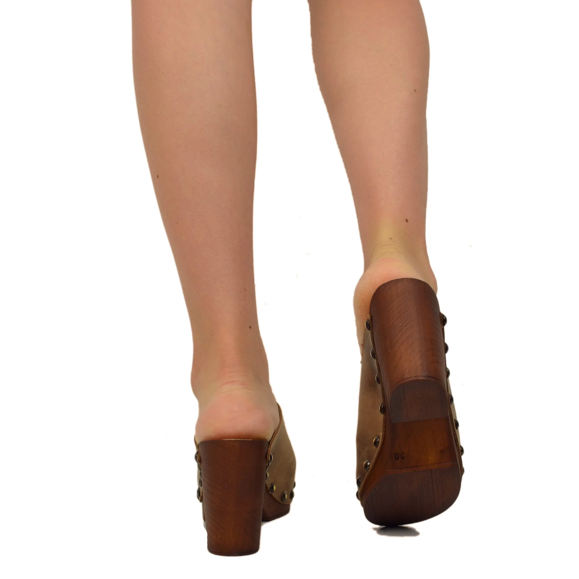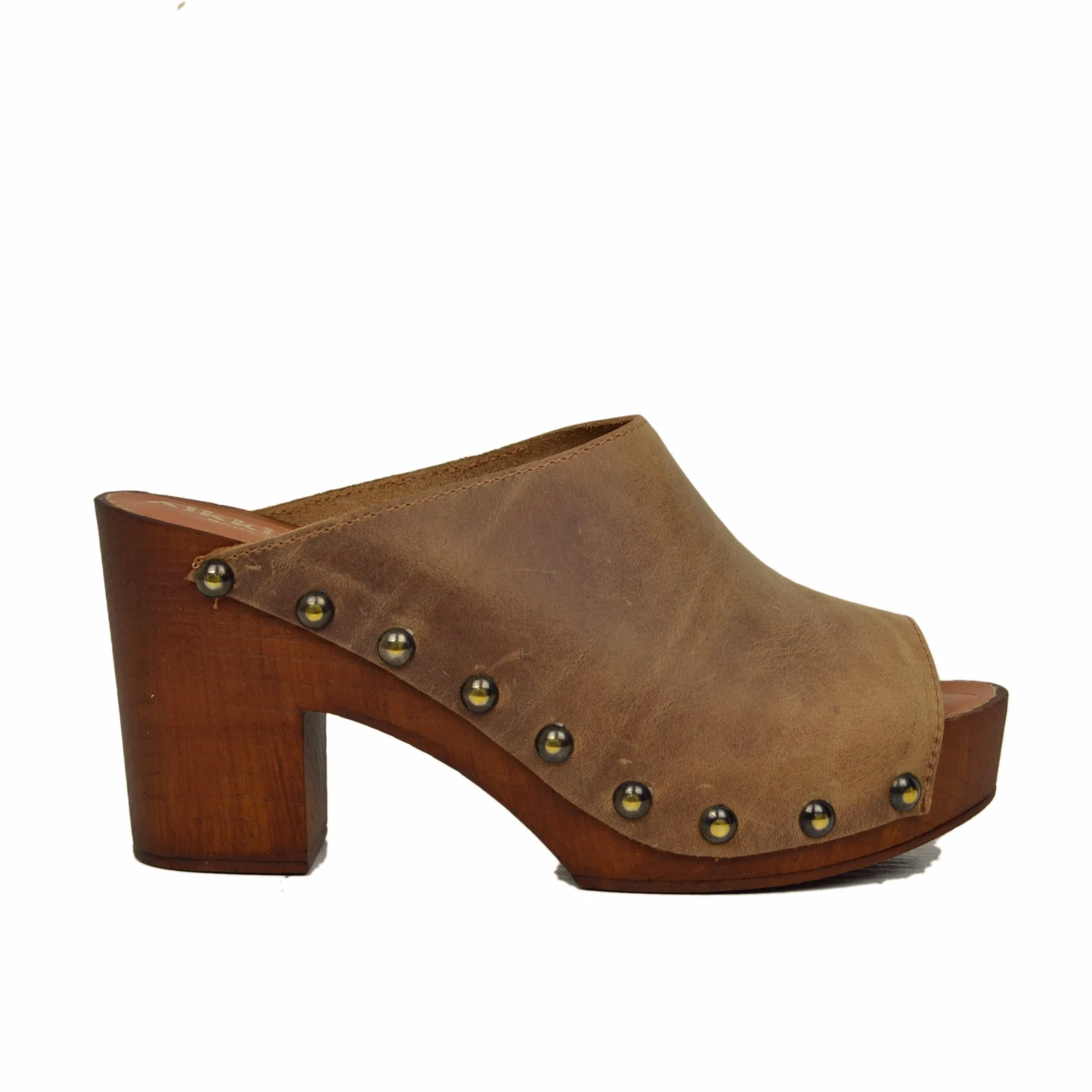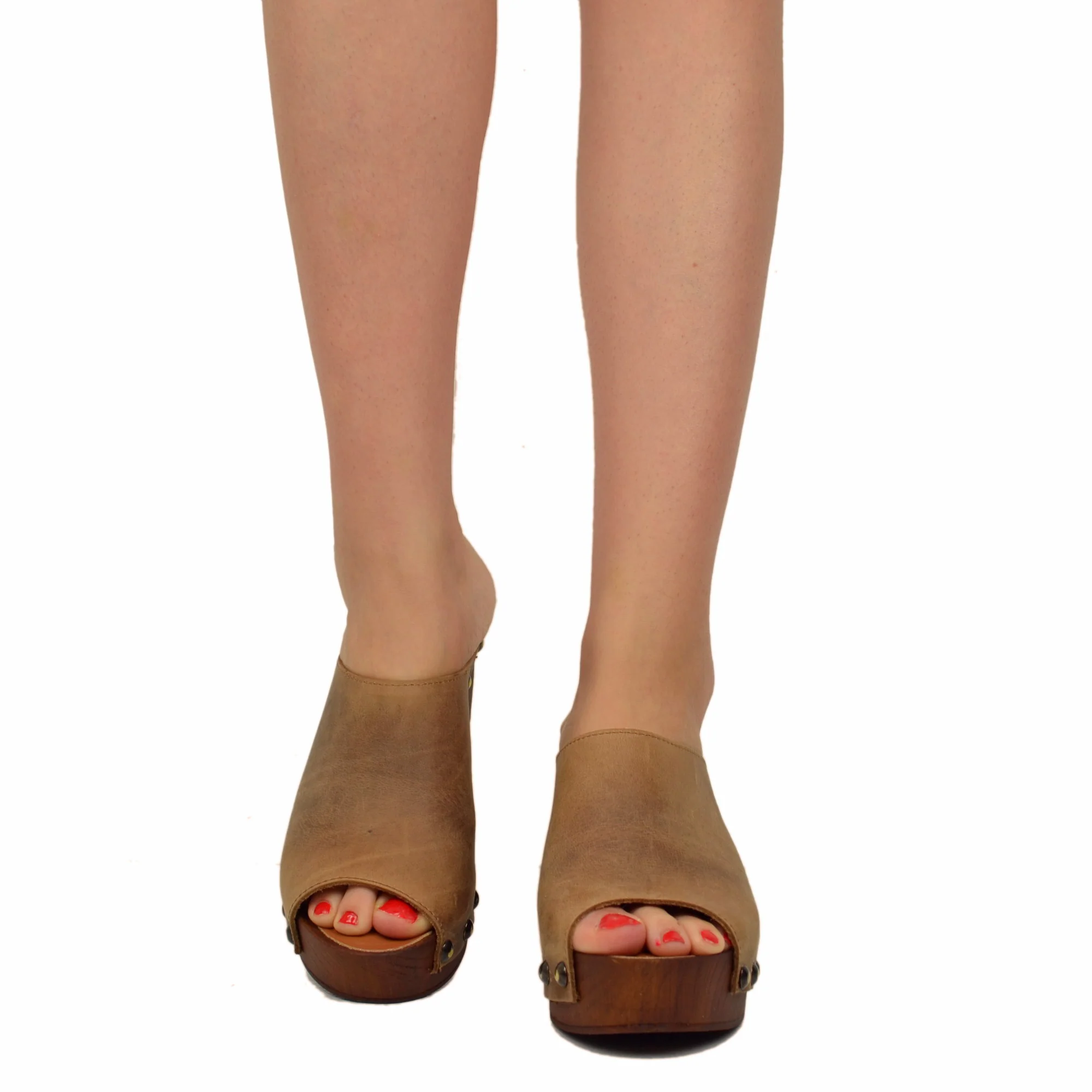 Zoccolo Donna in Pelle Ingrassata in color Camel Made in Italy