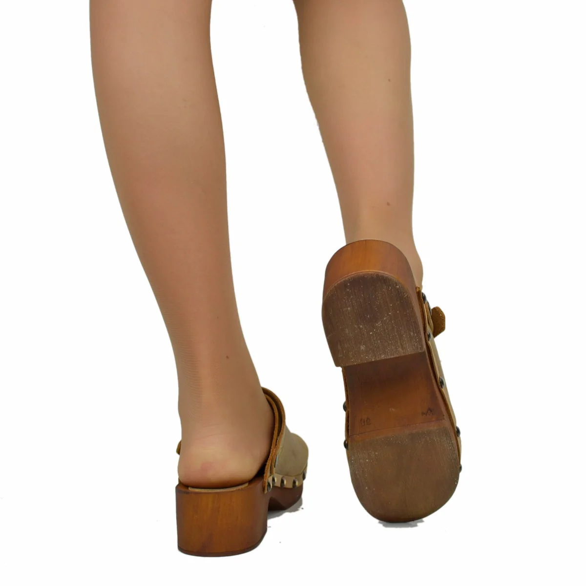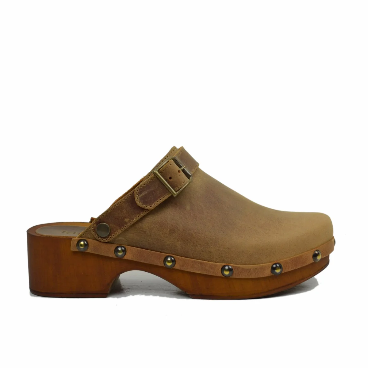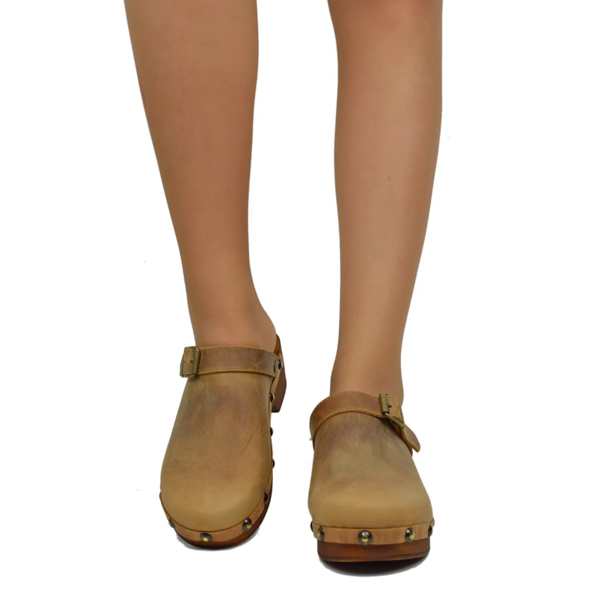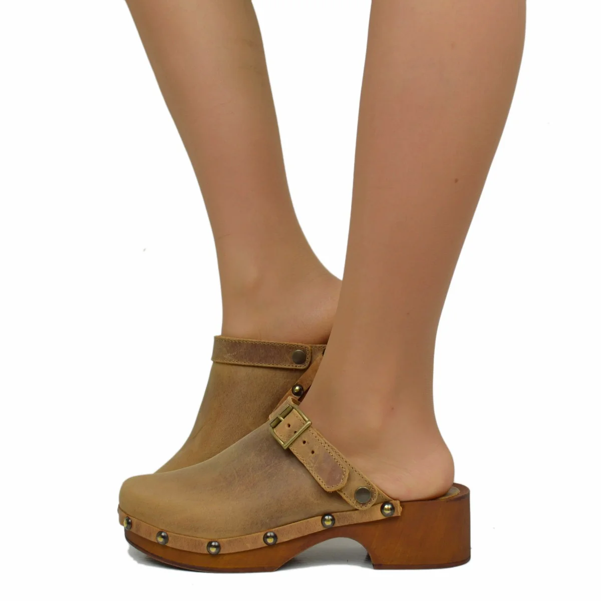 Zoccolo Donna in Pelle Ingrassata Vintage Camel Made in Italy